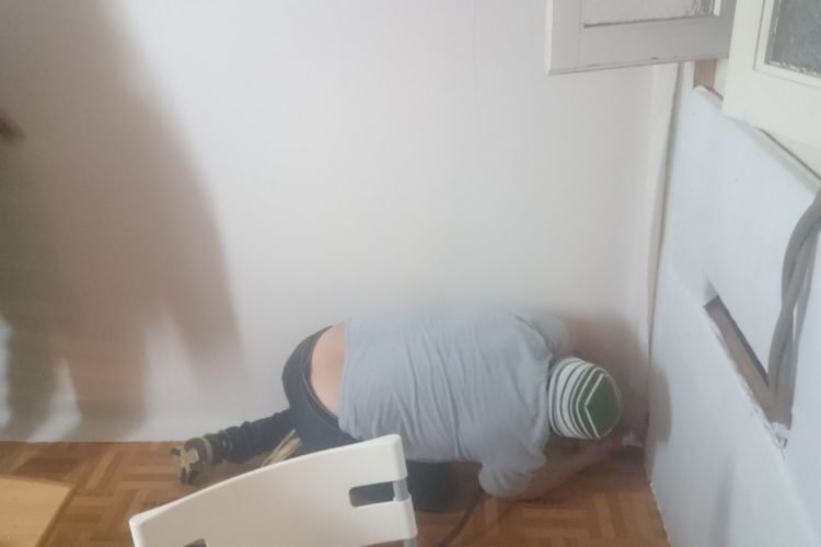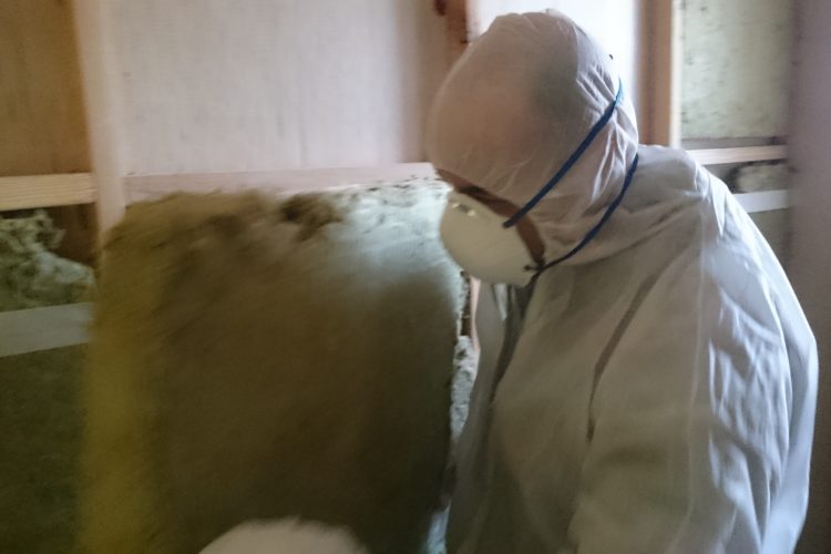 Seguimos con el acondicionamiento del local. Ahora ha sido el turno de colocar el material aislante y acondicionador, la lana de roca. Para esta tarea, y debido a que se desprenden partículas tóxicas, hay que ir provisto de protección especial.