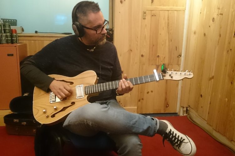 Ya hemos comenzado las sesiones de grabación de las guitarras eléctricas. Javi Córdoba es el músico que está grabando las guitarras del LP de Antonio Palma, Cuervo Rojo.